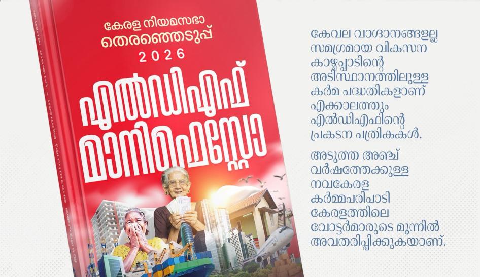 നമ്മുടെ നാട് നവകേരള നിർമ്മിതിയുടെ പൂർത്തീകരണത്തിലേക്ക് കരുത്തോടെ മുന്നേറുകയാണ്. 2026-ലെ നിയമസഭാ തെരഞ്ഞെടുപ്പിലേക്കുള്ള ഇടതുപക്ഷ ജനാധിപത്യ മുന്നണിയുടെ പ്രകടന പത്രിക തികഞ്ഞ അഭിമാനത്തോടെയും ആത്മവിശ്വാസത്തോടെയും ജനങ്ങൾക്ക് മുന്നിൽ ഇന്ന് സമർപ്പിച്ചു.