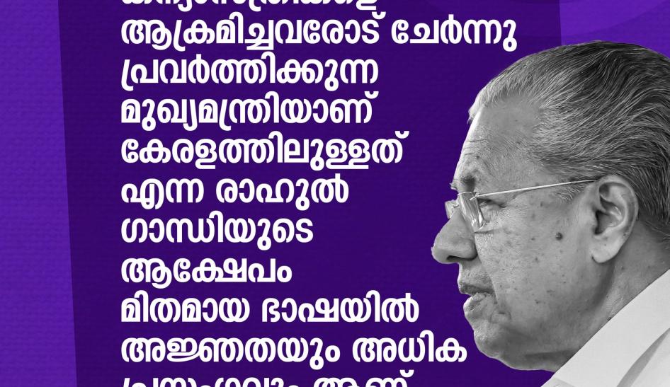 ഛത്തീസ്ഗഡിലെ കന്യാസ്ത്രീകളെ ആക്രമിച്ചവരോട് ചേർന്നു പ്രവർത്തിക്കുന്ന മുഖ്യമന്ത്രിയാണ് കേരളത്തിലുള്ളത് എന്ന രാഹുൽ ഗാന്ധിയുടെ ആക്ഷേപം മിതമായ ഭാഷയിൽ അജ്ഞതയും അധിക പ്രസംഗവും ആണ്.