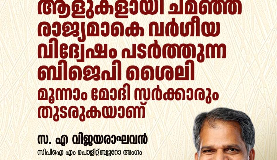 വയനാട്ടിലെ ഉരുൾപൊട്ടൽ ദുരന്തത്തിന്റെ കെടുതികൾ പരിഹരിക്കാൻ കേരളത്തെ സഹായിക്കാനുള്ള ഉത്തരവാദിത്തത്തിൽനിന്ന് കേന്ദ്ര സർക്കാർ ഒളിച്ചോടുകയാണ്. സഹായം നൽകുന്നില്ലെന്ന് മാത്രമല്ല, അന്യായമായി കേരളത്തെ കുറ്റപ്പെടുത്തുകയുമാണ് കേന്ദ്രം.