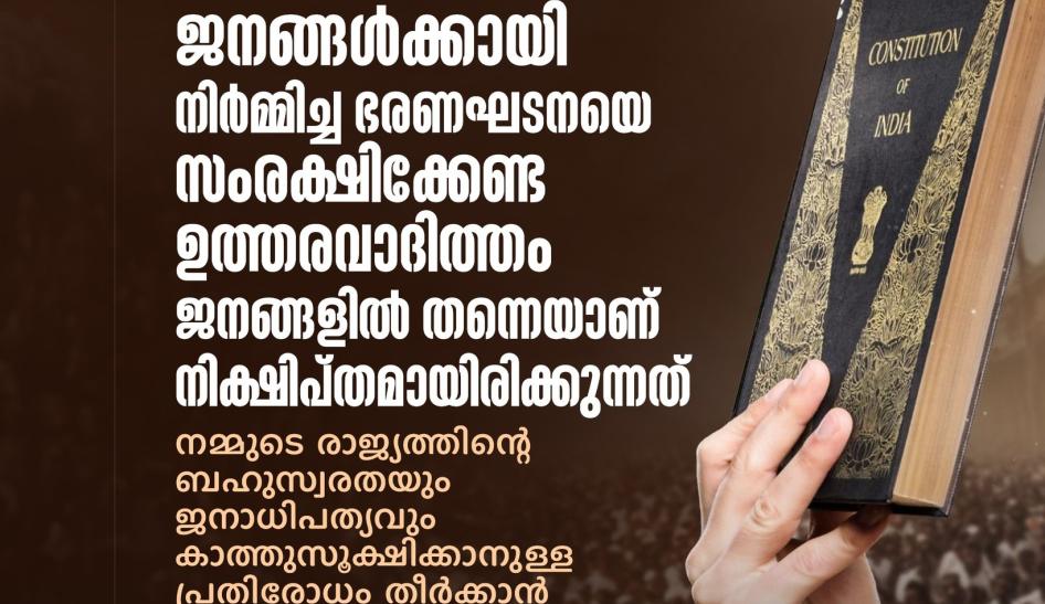 ജനങ്ങൾ ജനങ്ങൾക്കായി നിർമ്മിച്ച ഭരണഘടനയെ സംരക്ഷിക്കേണ്ട ഉത്തരവാദിത്തം ജനങ്ങളിൽ തന്നെയാണ് നിക്ഷിപ്തമായിരിക്കുന്നത്, നമ്മുടെ രാജ്യത്തിൻ്റെ ബഹുസ്വരതയും ജനാധിപത്യവും കാത്തുസൂക്ഷിക്കാനുള്ള പ്രതിരോധം തീർക്കാൻ ഓരോ പൗരനും തയ്യാറാവേണ്ട സമയമാണിത്