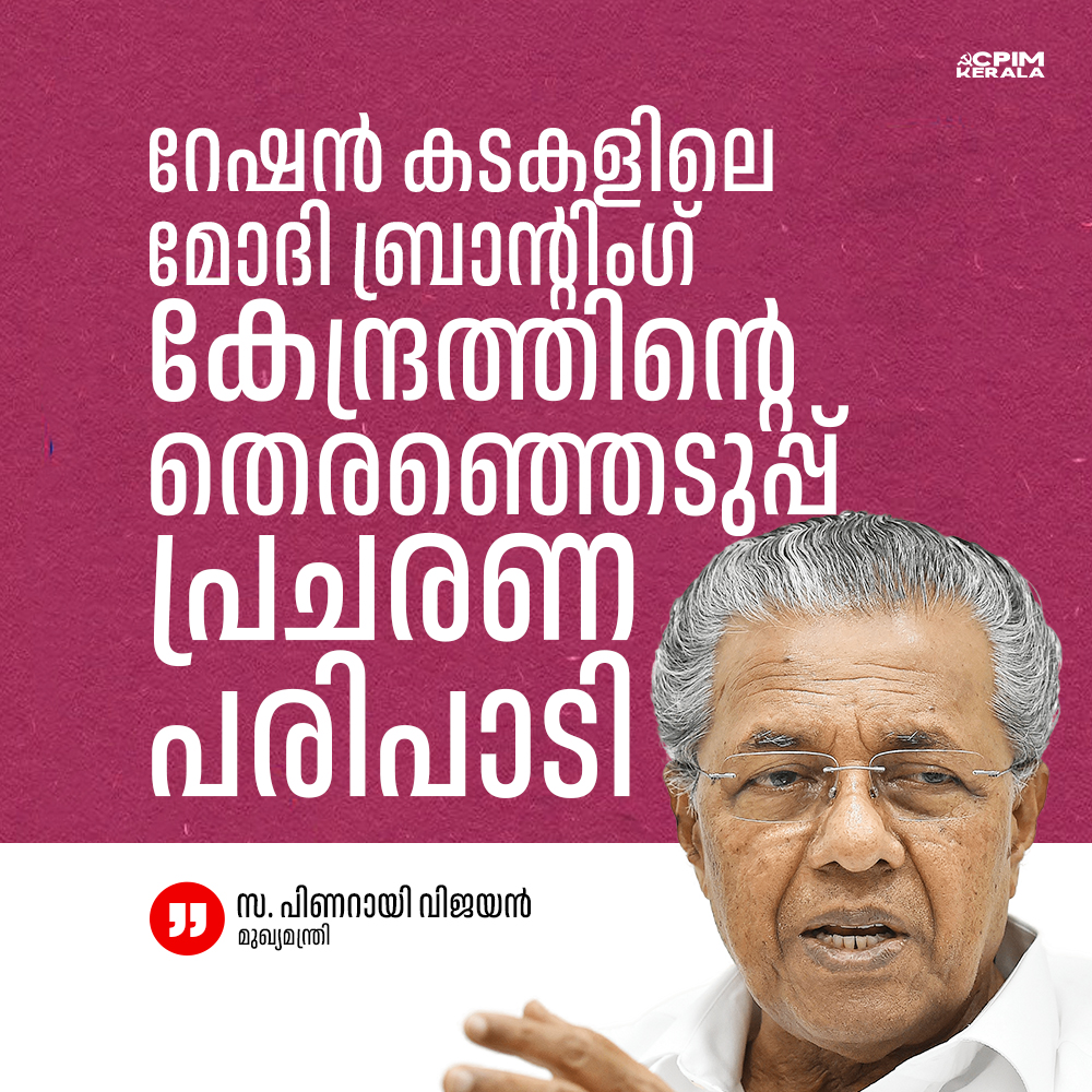 റേഷൻ കടയിലെ മോദി ബ്രാൻ്റിംഗ് കേന്ദ്രത്തിന്റെ തെരഞ്ഞെടുപ്പ് പ്രചരണ പരിപാടിയാണ്. കേന്ദ്രസർക്കാർ നടപടി ശരിയല്ലെന്നും നടപ്പാക്കാന് വിഷമമാണെന്നും കേരളം അറിയിക്കും. റേഷൻ കടയ്ക് മുന്നിൽ മോഡിയുടെ സെൽഫി പോയിന്റ് കേരളത്തിൽ സ്ഥാപിക്കില്ല. ദീര്ഘകാലമായി റേഷന് നിലനില്ക്കുന്ന സംസ്ഥാനമാണ് കേരളം. അതിന്റെ ഭാഗമായി റേഷന് കടകളും നിലനില്ക്കുന്നുണ്ട്. എന്നാല് ഇതേവരെയില്ലാത്ത ഒരു പുതിയ പ്രചരണ പരിപാടിയാണ് കേന്ദ്രം നിര്ദ്ദേശിച്ചിട്ടുള്ളത്. ലേക്സഭാ തെരഞ്ഞെടുപ്പ് അടുത്ത ഘട്ടത്തില് തീര്ച്ചയായും തെരഞ്ഞെടുപ്പ് പ്രചരണത്തിന് വേണ്ടിയുള്ളതാണ്. ഈക്കാര്യം കാണിച്ചു കൊണ്ട് ഇത് ശരിയല്ലെന്നും നടപ്പാക്കാന് വിഷമമാണെന്നും കേന്ദ്രസര്ക്കാരിനെ അറിയിക്കും. ഈ വിഷയം തെരഞ്ഞെടുപ്പ് കമ്മീഷന്റെ ശ്രദ്ധയിൽ കൊണ്ടുവരാൻ ശ്രമിക്കും.