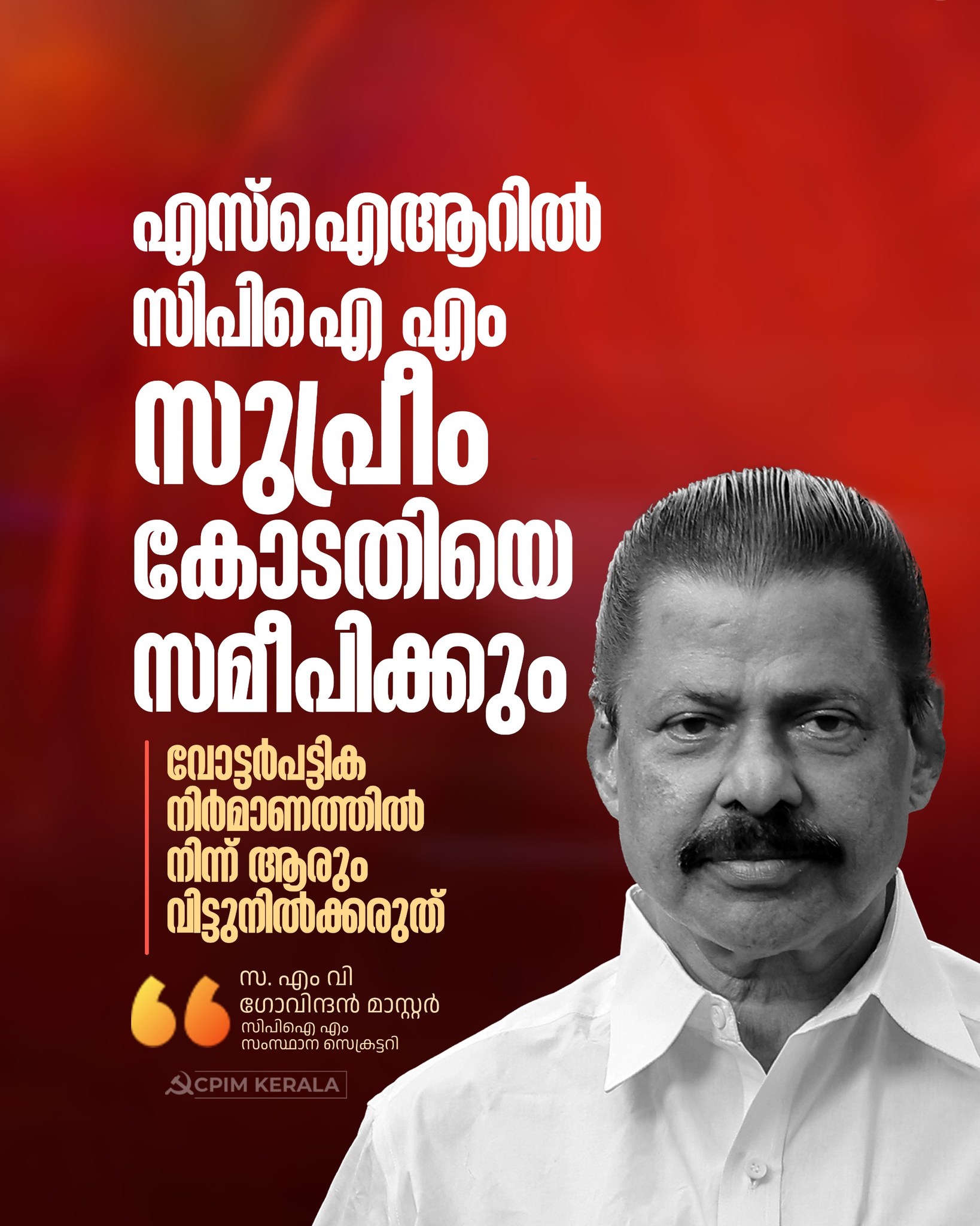 വോട്ടർപ്പട്ടിക തീവ്ര പുനഃപരിശോധന വിഷയത്തിൽ പാർടി സുപ്രീംകോടതിയെ സമീപിക്കും