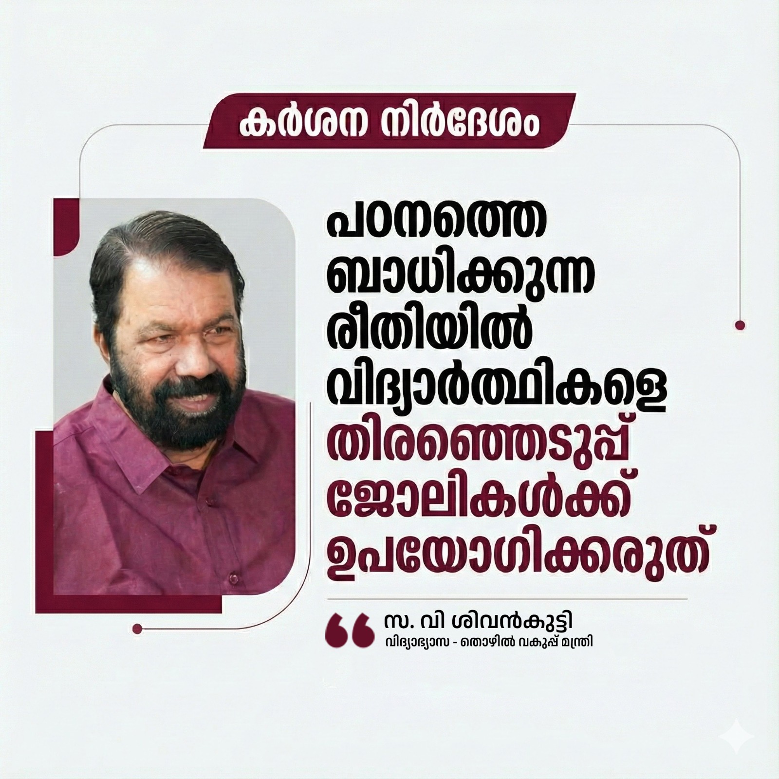 വിദ്യാഭ്യാസ ആവശ്യങ്ങൾക്കല്ലാതെ കുട്ടികളെ മറ്റ് ഔദ്യോഗിക കൃത്യനിർവ്വഹണങ്ങൾക്ക് ഉപയോഗിക്കുന്നത് അവരുടെ പഠനാവകാശ ലംഘനമാണ്. വിദ്യാർത്ഥികളുടെ പഠനം തടസ്സപ്പെടുന്നില്ലെന്ന് ഉറപ്പുവരുത്താൻ വിദ്യാഭ്യാസ വകുപ്പ് ഉദ്യോഗസ്ഥർക്ക് കർശന നിർദ്ദേശം നൽകിയിട്ടുണ്ട്.