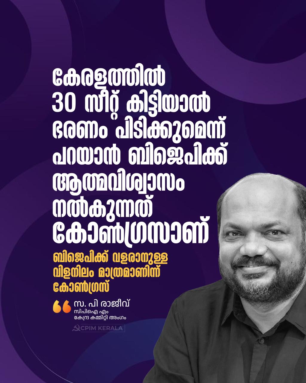 കേരളത്തിൽ 30 സീറ്റ് കിട്ടിയാൽ ഭരണം പിടിക്കുമെന്ന് പറയാൻ ബിജെപിക്ക് ആത്മവിശ്വാസം നൽകുന്നത് കോൺഗ്രസാണ്