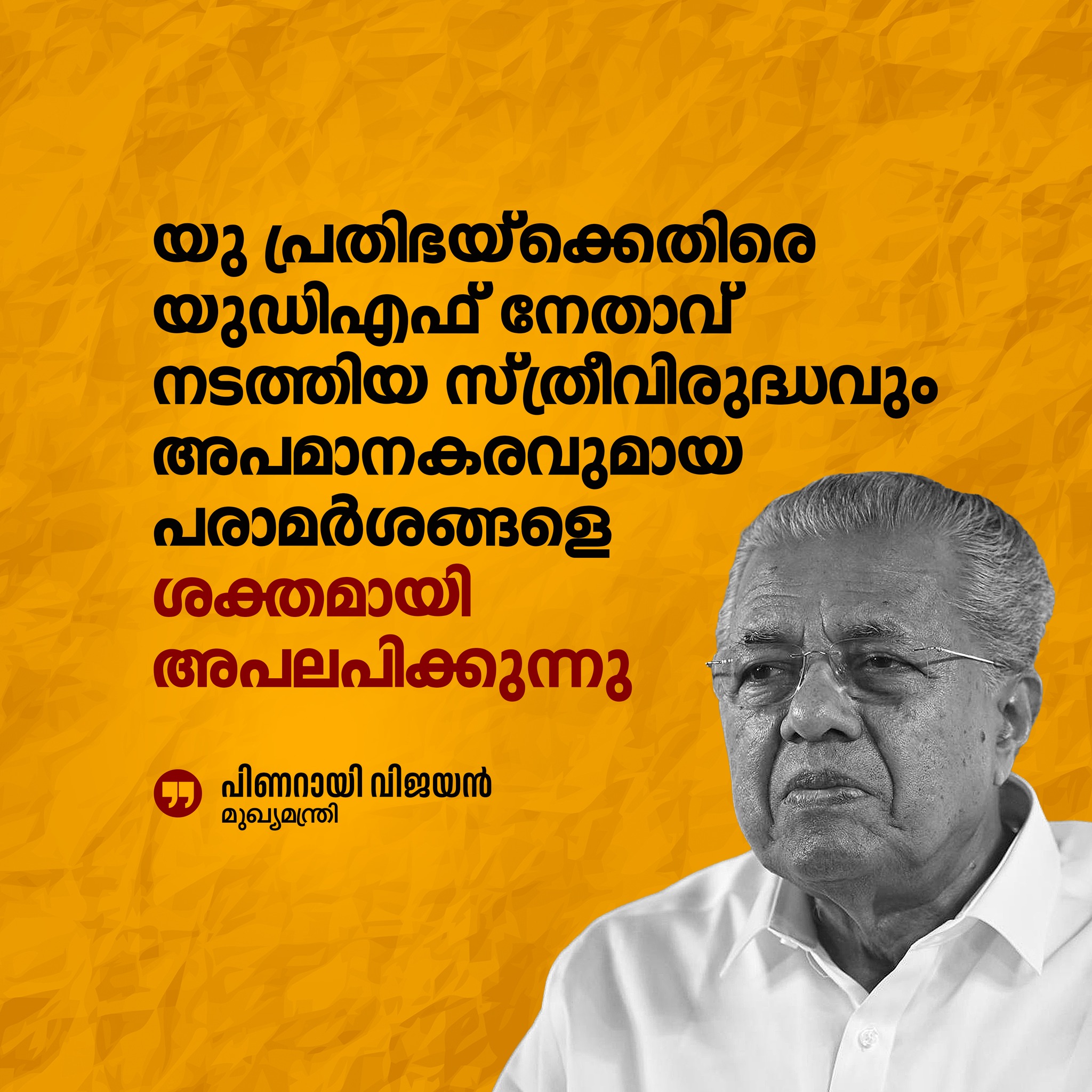 നാടിന്റെ വികസനവും ജനങ്ങളുടെ പ്രശ്നങ്ങളും ചർച്ച ചെയ്യാതെ സ്ത്രീകളെ അപമാനിച്ച് വോട്ട് നേടാമെന്നത് യുഡിഎഫിന്റെ തെറ്റിദ്ധാരണയാണ്. സ്ത്രീകളുടെ അഭിമാനവും അവകാശങ്ങളും കാത്തുസൂക്ഷിക്കുന്ന ഇടതുപക്ഷ നിലപാടിനൊപ്പം കേരളം എപ്പോഴും നിലകൊണ്ടിട്ടുണ്ട്.
