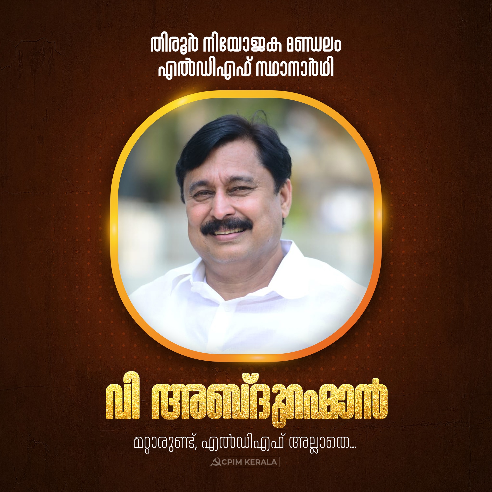 തിരൂർ നിയോജക മണ്ഡലം എൽഡിഎഫ് സ്ഥാനാർഥി വി അബ്ദുറഹ്മാൻ