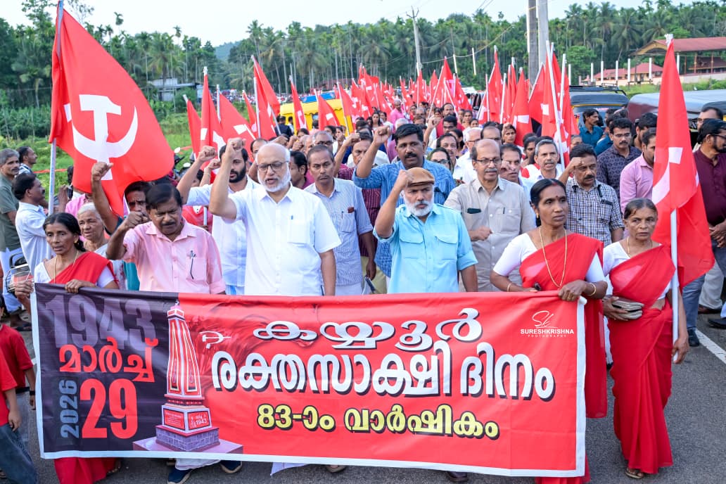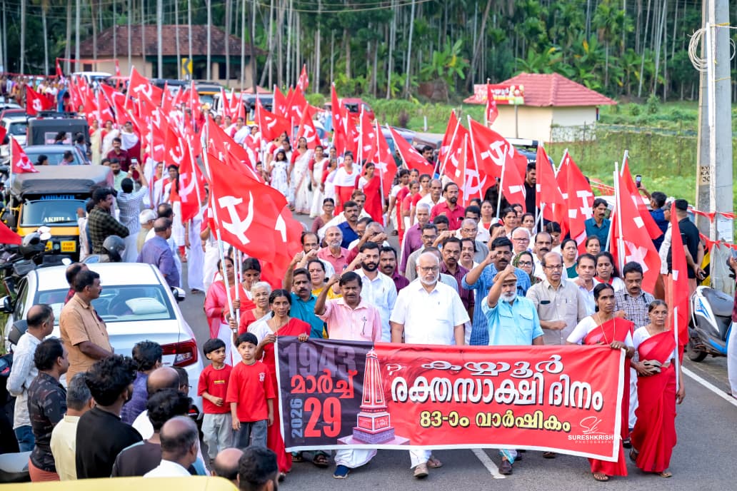 കയ്യൂര് രക്തസാക്ഷിദിനം: പ്രകടനവും അനുസ്മരണ പൊതുയോഗവും സിപിഐ എം ജനറല് സെക്രട്ടറി സ. എം എ ബേബി ഉദ്ഘാടനം ചെയ്തു
