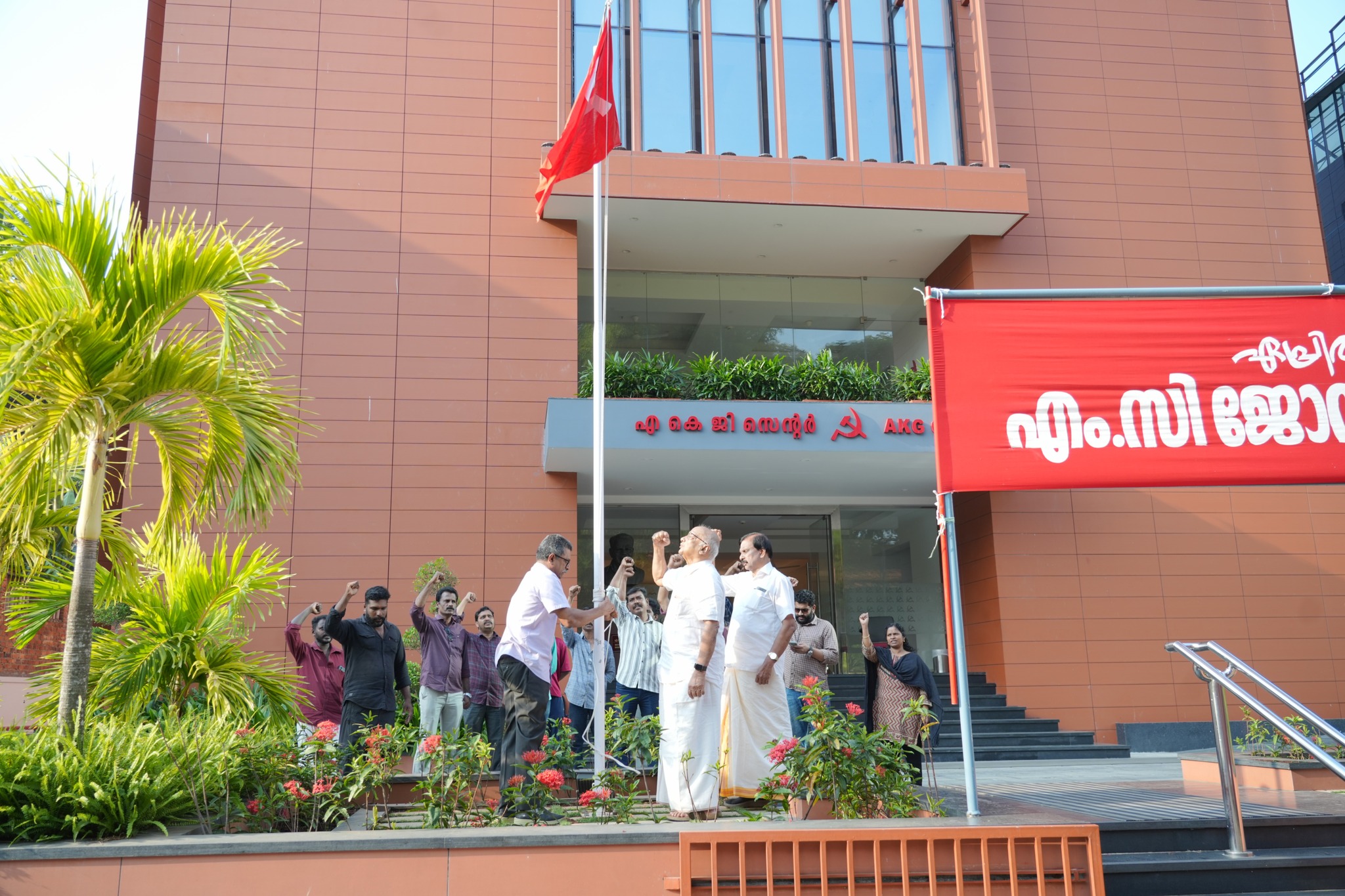 സ. എം സി ജോസഫൈൻ ദിനാചരണത്തിന്റെ ഭാഗമായി എകെജി സെന്ററിൽ മുതിർന്ന സിപിഐ എം നേതാവ് സ. എസ് രാമചന്ദ്രൻപിളള പതാക ഉയർത്തി