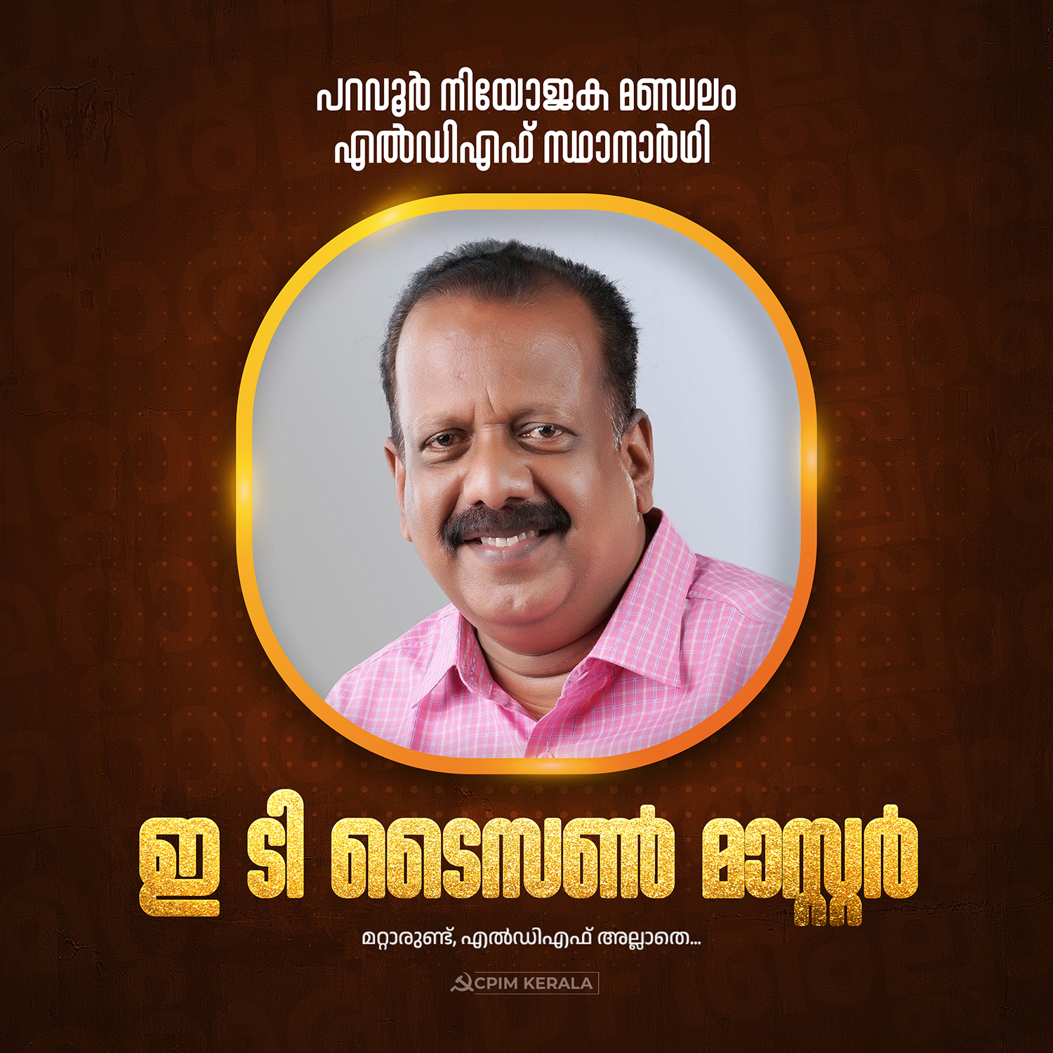 പറവൂർ നിയോജക മണ്ഡലം എൽഡിഎഫ് സ്ഥാനാർഥി ഇ ടി ടൈസൺ മാസ്റ്റർ