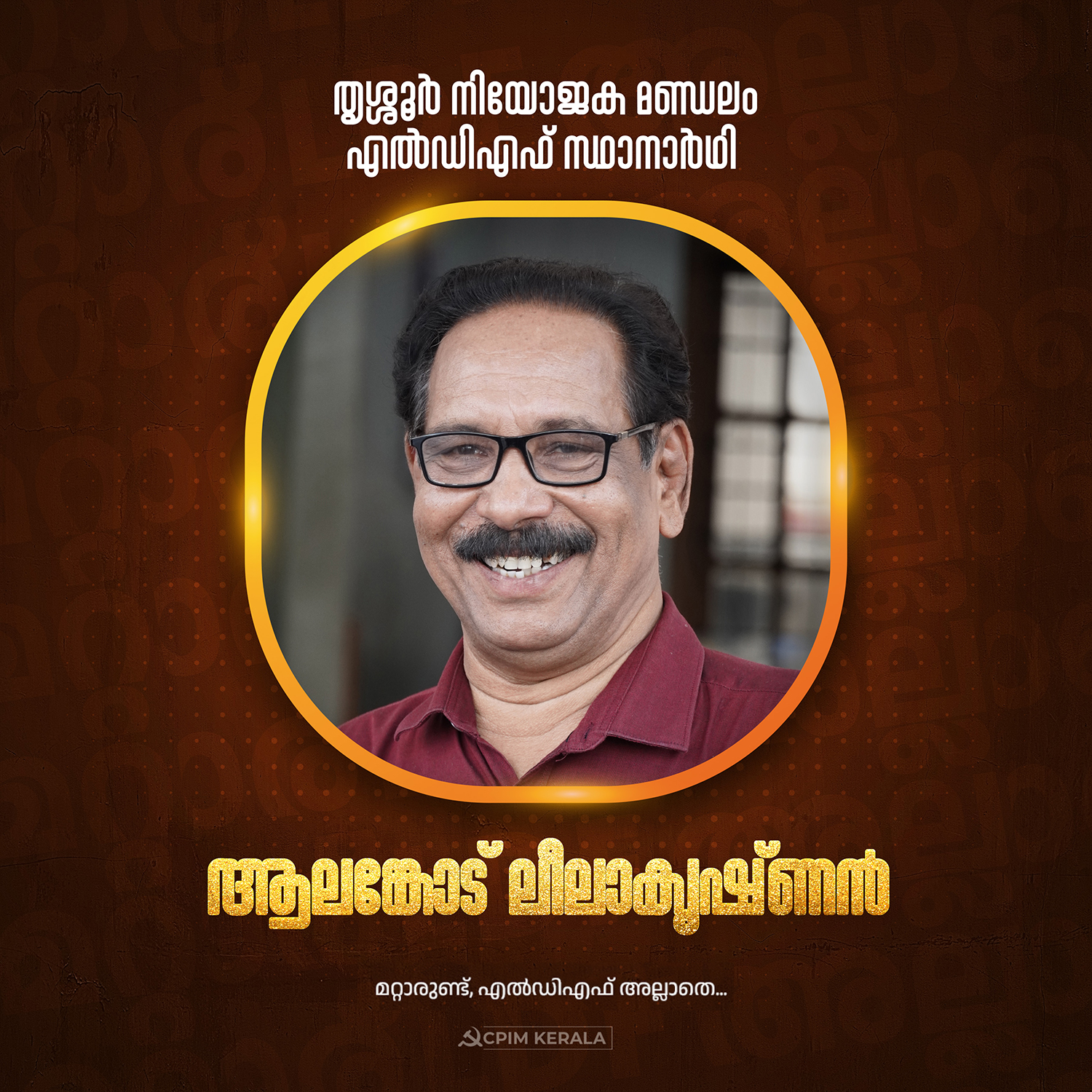 തൃശ്ശൂർ നിയോജക മണ്ഡലം എൽഡിഎഫ് സ്ഥാനാർഥി ആലങ്കോട് ലീലാകൃഷ്ണൻ