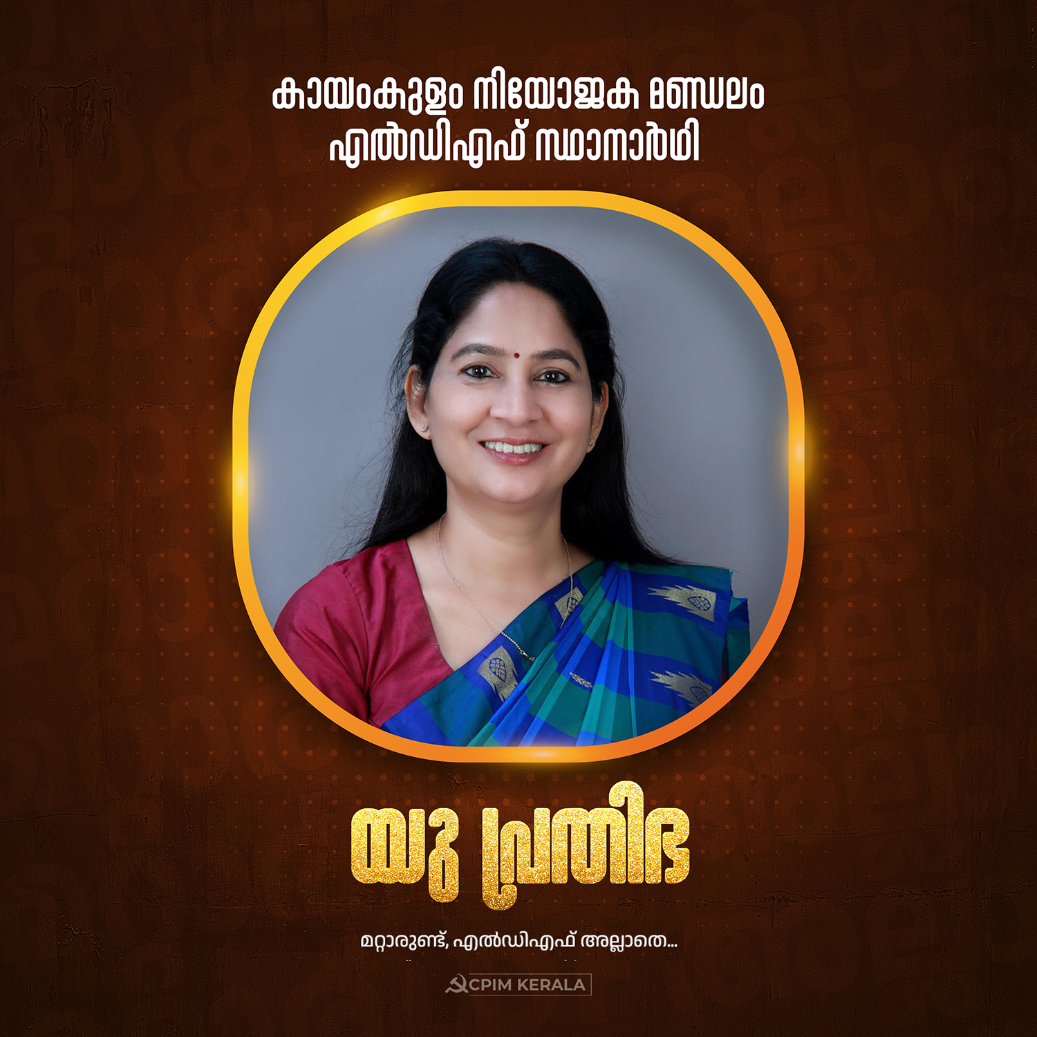 കായംകുളം നിയോജക മണ്ഡലം എൽഡിഎഫ് സ്ഥാനാർഥി അഡ്വ. യു പ്രതിഭ
