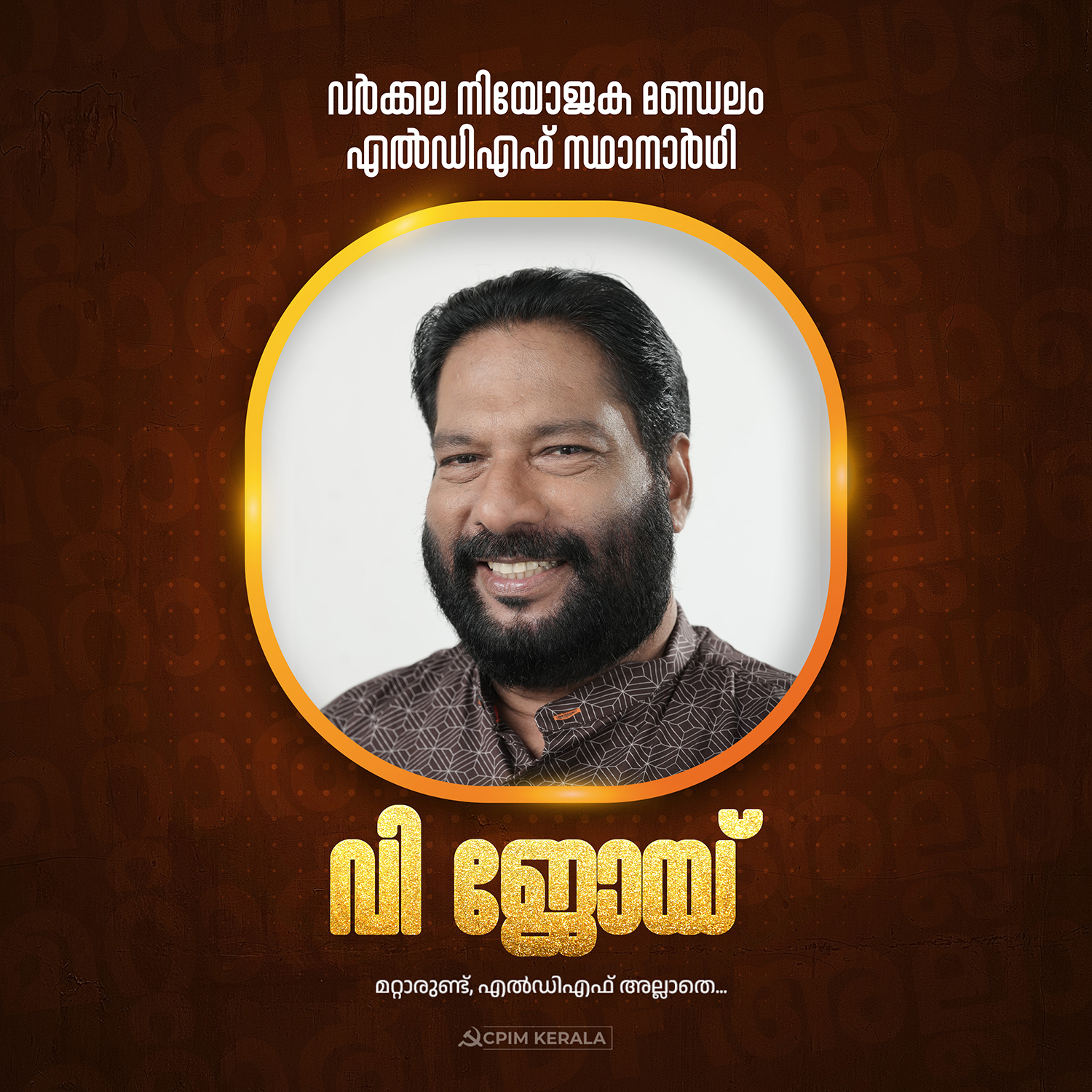 വര്ക്കല നിയോജക മണ്ഡലം എൽഡിഎഫ് സ്ഥാനാർഥി അഡ്വ. വി ജോയി