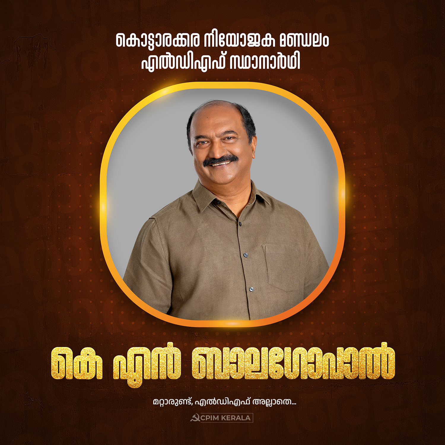 കൊട്ടാരക്കര നിയോജക മണ്ഡലം എൽഡിഎഫ് സ്ഥാനാർഥി കെ എന് ബാലഗോപാല്