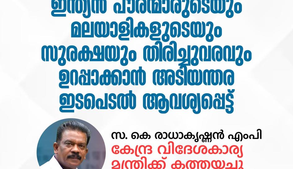 നേപ്പാളിലെ ആഭ്യന്തര കലാപം മൂലം കുടുങ്ങിക്കിടക്കുന്ന ഇന്ത്യൻ പൗരന്മാരുടെയും മലയാളികളുടെയും സുരക്ഷയും തിരിച്ചുവരവും ഉറപ്പാക്കാൻ അടിയന്തര ഇടപെടൽ ആവശ്യപ്പെട്ട് വിദേശകാര്യ മന്ത്രി ഡോ. എസ്. ജയ്ശങ്കറിന് കത്ത് നൽകി.