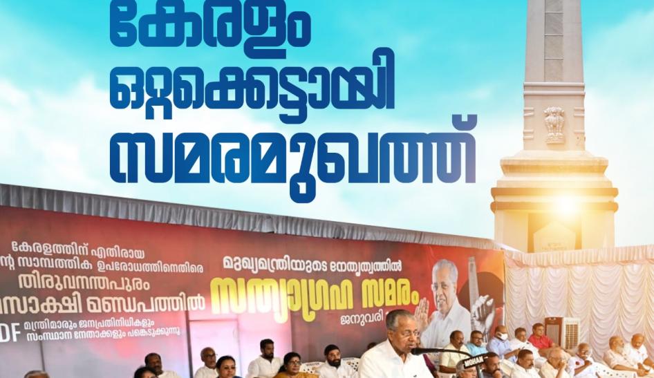 കേരളത്തിനെതിരായ കേന്ദ്രസർക്കാരിന്റെ സാമ്പത്തിക ഉപരോധത്തിനെതിരെ ജനുവരി 12 ന് തിരുവനന്തപുരം രക്തസാക്ഷി മണ്ഡപത്തിൽ മുഖ്യമന്ത്രിയുടെ നേതൃത്വത്തിൽ മന്ത്രിമാർ, എംഎൽഎമാർ, എംപിമാർ എന്നിവർ പങ്കെടുക്കുന്ന സത്യാഗ്രഹ സമരം സംഘടിപ്പിക്കും.