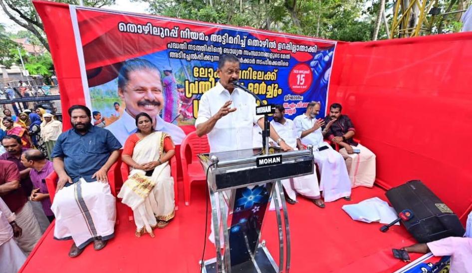 മഹാത്മാഗാന്ധി ദേശീയ ഗ്രാമീണ തൊഴിലുറപ്പ് പദ്ധതി അട്ടിമറിച്ച കേന്ദ്രസർക്കാർ നടപടിക്കെതിരെ തൊഴിലുറപ്പ് തൊഴിലാളികൾ തിരുവനന്തപുരത്ത് ലോക്ഭവനിലേക്ക് നടത്തിയ മാർച്ച് സിപിഐ എം സംസ്ഥാന സെക്രട്ടറി സ. എം വി ഗോവിന്ദൻ മാസ്റ്റർ ഉദ്ഘാടനം ചെയ്തു.