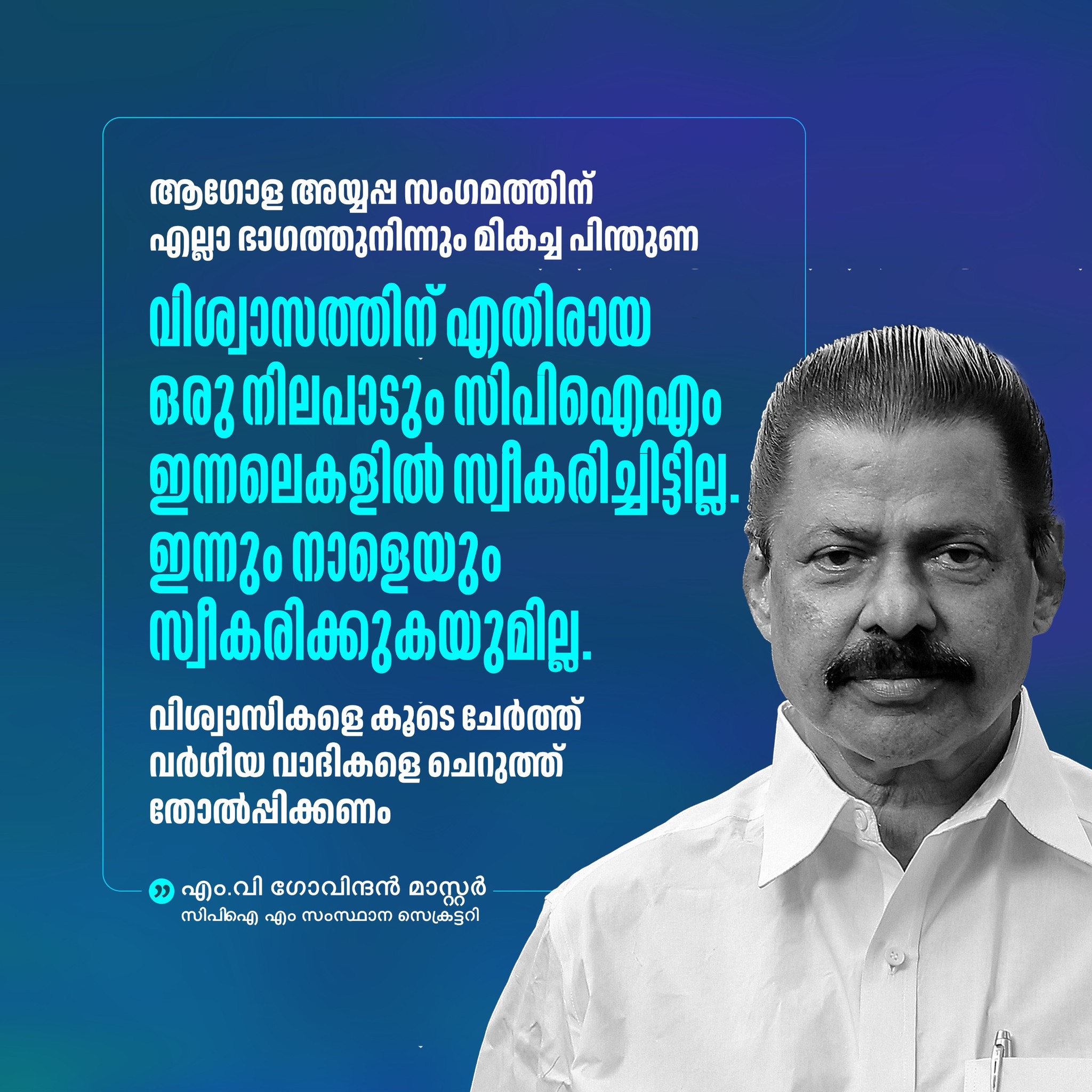 വർഗീയ വാദികൾക്ക് വിശ്വാസമില്ല, വിശ്വാസം ഒരു ഉപകരണമായി ഉപയോഗിക്കുന്നവരാണ് അവർ. വിശ്വാസികളെ കൂടെ ചേർത്ത് വേണം വർഗീയ വാദികളെ ചെറുത്ത് തോൽപ്പിക്കാൻ.