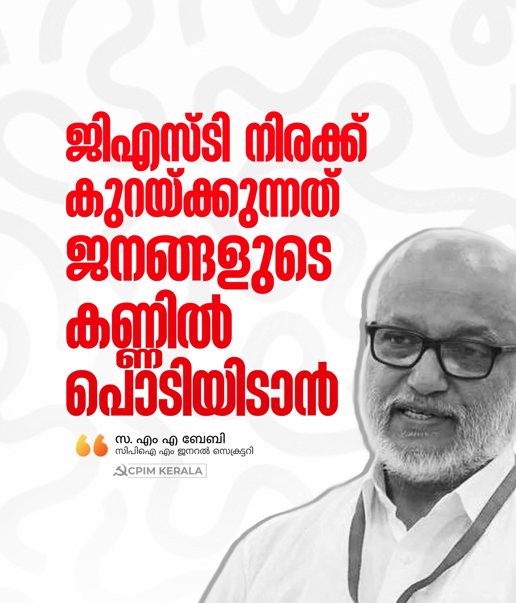 കേന്ദ്രസർക്കാർ ജിഎസ്ടി നിരക്ക് കുറയ്ക്കുന്നത് ജനങ്ങളുടെ കണ്ണിൽ പൊടിയിടാനാണ്. രാജ്യത്തെ ജനങ്ങളെ സ്വയം പര്യാപ്തരാക്കുക എന്നതാണ് കേന്ദ്രസർക്കാരിന്റെ ഉദ്ദേശമെങ്കിൽ ഇൻഷുറൻസിൽ 100 ശതമാനം എഫ്ഡിഐ അനുവദിക്കുകയോ പ്രതിരോധം, ഖനനം തുടങ്ങിയ നിർണായക മേഖലകളെ ചൂഷണത്തിനായി തുറന്നുകൊടുക്കുകയോ ചെയ്യുമായിരുന്നില്ല.