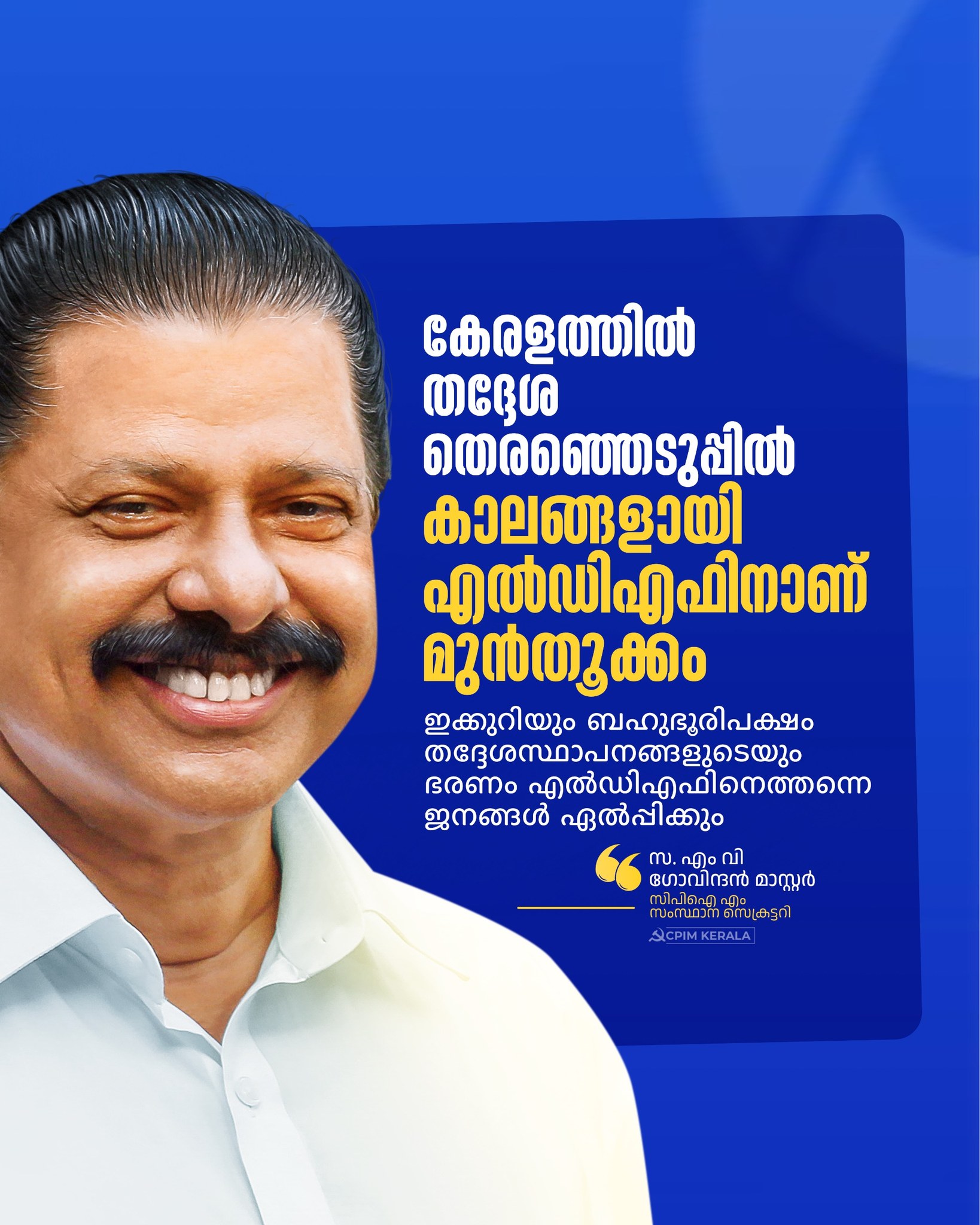 കേരളത്തിൽ തദ്ദേശ തെരഞ്ഞെടുപ്പിൽ കാലങ്ങളായി എൽഡിഎഫിനാണ് മുൻതൂക്കം. ജനങ്ങളുടെ നിത്യജീവിതവുമായി നേരിട്ടു ബന്ധപ്പെടുന്ന ഭരണസംവിധാനമാണ് തദ്ദേശ സമിതികൾ. അതുകൊണ്ടുതന്നെ ഏറ്റവും കൂടുതൽ ജനങ്ങൾ പങ്കെടുക്കുന്ന ഭരണസംവിധാനവും ഇതുതന്നെ. ഈ ജനതയുടെ വിശ്വാസം നേടുന്നതിൽ ഇടതുപക്ഷം ആവർത്തിച്ച് വിജയിക്കുന്നത് അവരും ഇടതുപക്ഷവും തമ്മിലുള്ള അടുത്തബന്ധമാണ് വ്യക്തമാക്കുന്നത്. ജനജീവിതം മെച്ചപ്പെടുത്തുന്നതിൽ കമ്യൂണിസ്റ്റ് പാർടികളും എൽഡിഎഫും വഹിച്ച പങ്കിനുള്ള അംഗീകാരമാണ് ആവർത്തിച്ചുള്ള ഈ വിജയം എന്നു കാണാം.