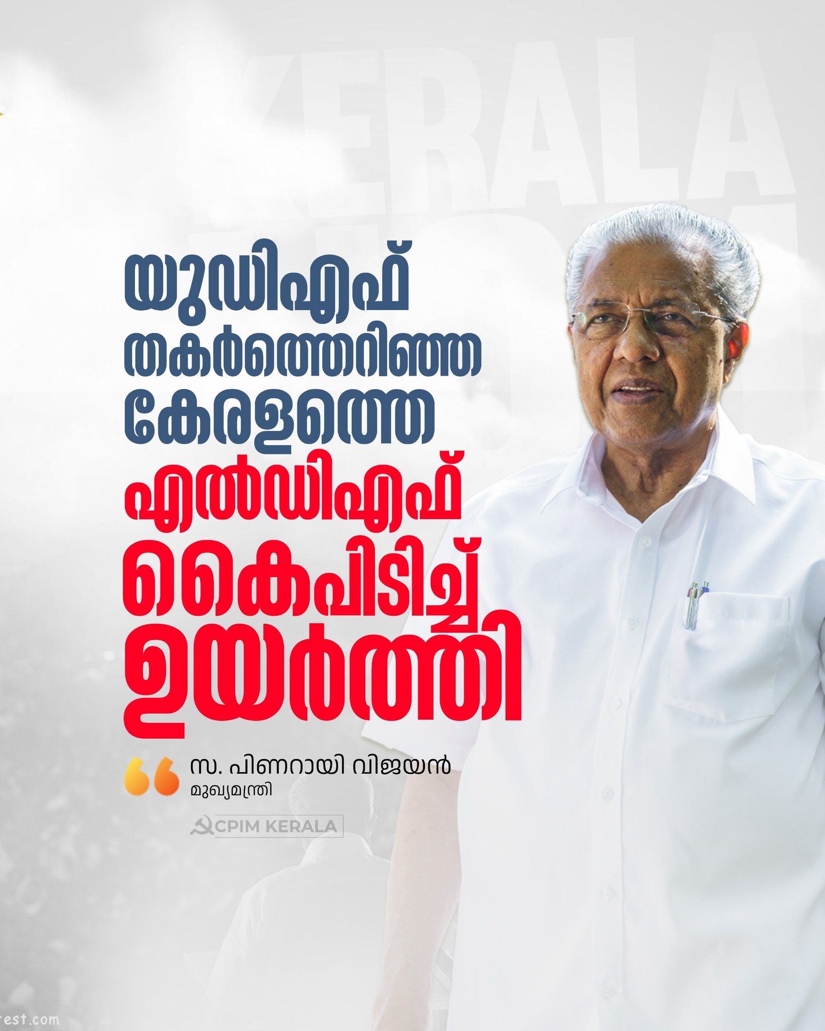 യുഡിഎഫ് തകർത്തെറിഞ്ഞ കേരളത്തെ കൈപിടിച്ചുയർത്തിയത് 2016-ൽ അധികാരത്തിൽ വന്ന എൽഡിഎഫ് സർക്കാരാണ്. 2021ലെ ഭരണത്തുടർച്ച കേരളം കൈവരിച്ച നേട്ടങ്ങൾ മുന്നോട്ടുകൊണ്ടുപോകാനും വികസന പ്രവർത്തനങ്ങളുടെ തുടർച്ചയ്ക്കും ഉപകരിച്ചു. സാമൂഹ്യക്ഷേമ പെൻഷനുകൾ നിലനിർത്താനും വർധിപ്പിക്കാനുമായി. 2016ൽ എൽഡിഎഫ് അധികാരമേൽക്കുമ്പോൾ കേരളത്തിന്റെ സ്ഥിതി വളരെ ദയനീയമായിരുന്നു. യുഡിഎഫ് ഭരണത്തിൽ എല്ലാരംഗത്തും തകർച്ചയായിരുന്നു. നാടിങ്ങനെ ആയിപ്പോയല്ലോ എന്നോർത്ത് ജനങ്ങൾ ശപിച്ച കാലം. കാലാനുസൃതമായ പുരോഗതി ഒരുരംഗത്തും ഉണ്ടായില്ല. എല്ലാരംഗത്തും പിറകോട്ടുപോയി. സാമൂഹ്യക്ഷേമ പെൻഷനുകൾ മുടങ്ങി. ഇതിനെല്ലാം ഒരുമാറ്റം പ്രതീക്ഷിച്ചാണ് 2016-ൽ ജനങ്ങൾ എൽഡിഎഫിനെ അധികാരത്തിലേറ്റിയത്.