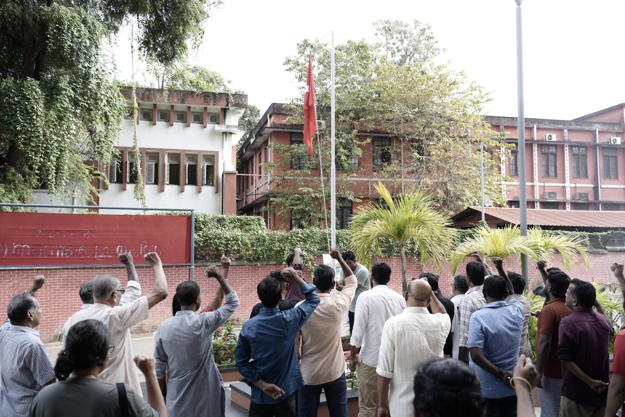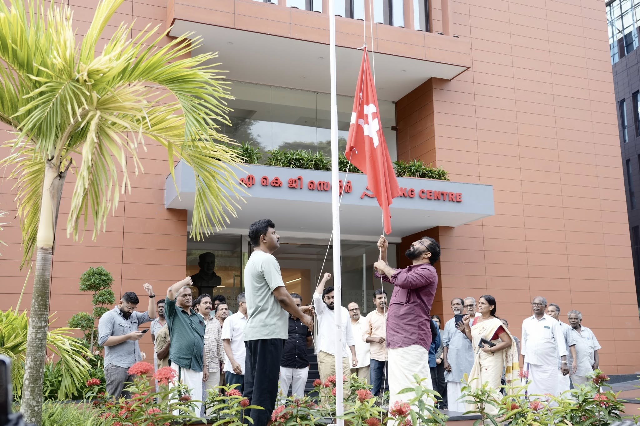 സിപിഐ എം കണ്ണൂർ ജില്ലാ കമ്മിറ്റി ഓഫീസിൽ സംസ്ഥാന മുഖ്യമന്ത്രിയും പാർടി പോളിറ്റ് ബ്യൂറോ അംഗവുമായ സ. പിണറായി വിജയൻ പതാക ഉയർത്തി