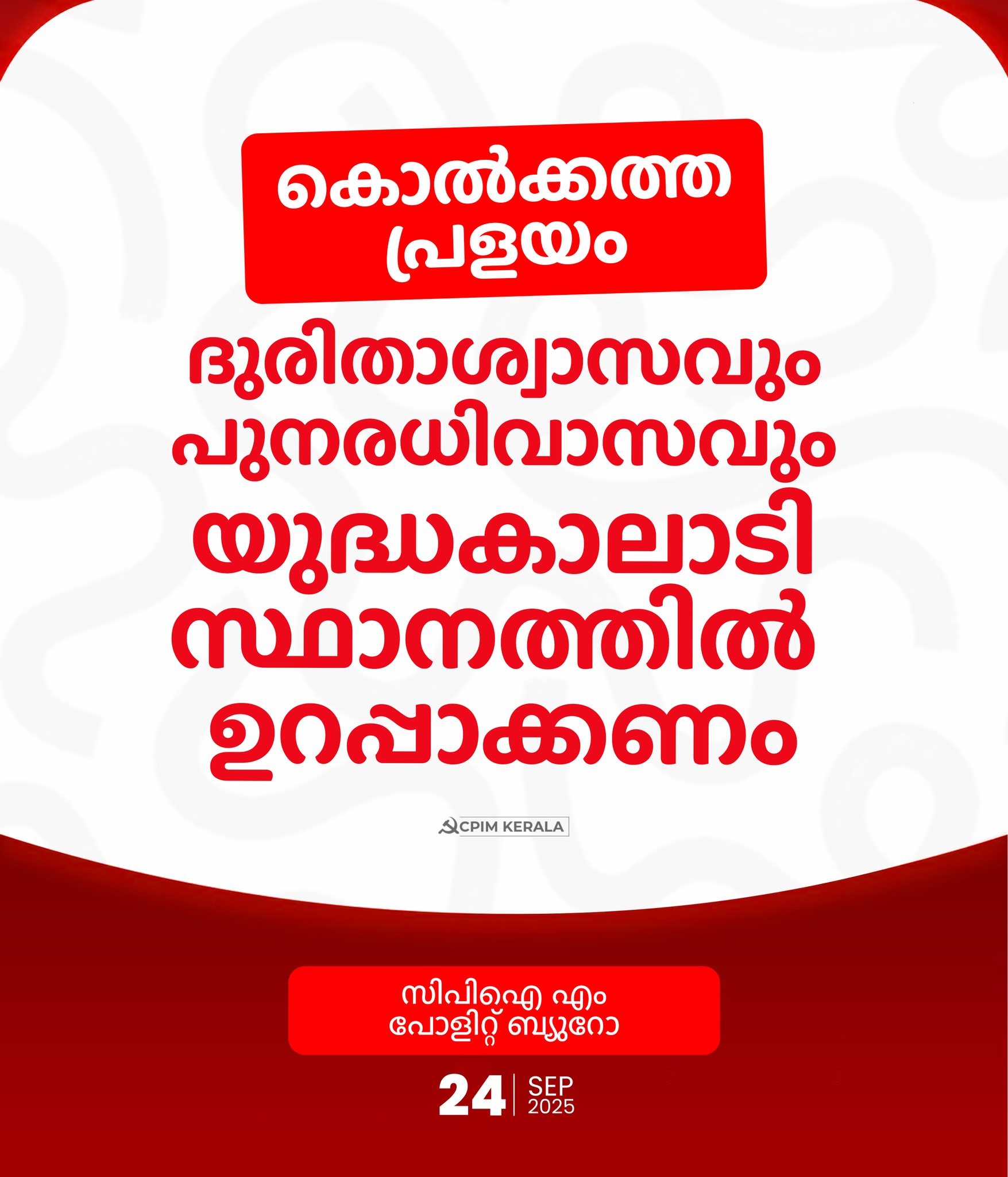കൊൽക്കത്തയിലെ വെള്ളപ്പൊക്ക ദുരിതം പരിഹരിക്കുന്നതിൽ തൃണമൂൽ കോൺഗ്രസ് നയിക്കുന്ന സംസ്ഥാന സർക്കാരിനും ബിജെപി നയിക്കുന്ന കേന്ദ്ര സർക്കാരിനുമുണ്ടായ പരാജയത്തെ ശക്തമായി അപലപിക്കുന്നു. കേന്ദ്ര - സംസ്ഥാന സർക്കാരുകളുടെ മുൻഗണനകൾ മറ്റു വിഷയങ്ങളിലാണ്. സൗന്ദര്യവൽക്കരണ പദ്ധതികൾക്കും കോർപ്പറേറ്റ് നയിക്കുന്ന "സ്മാർട്ട് സിറ്റി" പദ്ധതികൾക്കുമായി കോടിക്കണക്കിന് രൂപ സർക്കാർ ചെലവഴിക്കുന്നുണ്ട്. അതേസമയം സംസ്ഥാനത്തെ അഴുക്കുചാലുകൾ അടഞ്ഞുകിടക്കുകയാണ്. പ്രകൃതിദത്ത ജലാശയങ്ങളും തണ്ണീർത്തടങ്ങളും നശിപ്പിക്കപ്പെടുന്നു. ദുരന്തങ്ങളെ നേരിടാനുള്ള തയ്യാറെടുപ്പ് പ്രഖ്യാപനങ്ങളിൽ മാത്രമായി ചുരുങ്ങുകയാണ്.
