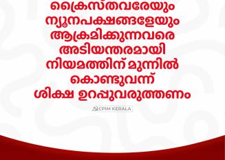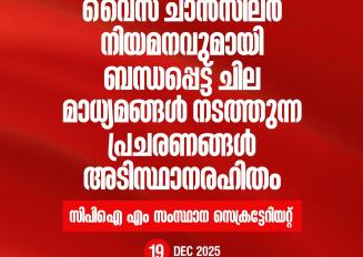04/01/2026വെനസ്വേലയ്ക്ക് നേരെയുള്ള അമേരിക്കയുടെ കടന്നാക്രമണത്തിൽ ഇന്ത്യൻ ജനത ശക്തമായ പ്രതിഷേധമുയർത്തണം. യുഎൻ പ്രമാണങ്ങൾക്ക് അനുസൃതമായി പെരുമാറാൻ അമേരിക്ക തയാറാവണം. വെനസ്വേലയിലെ ജനവാസ കേന്ദ്രങ്ങളിലേക്കാണ് ബോംബാക്രമണം നടത്തിയിരിക്കുന്നത്. നാളുകളായി യുഎസിൻ്റെ ലക്ഷ്യമായിരുന്നു വെനസ്വേല.