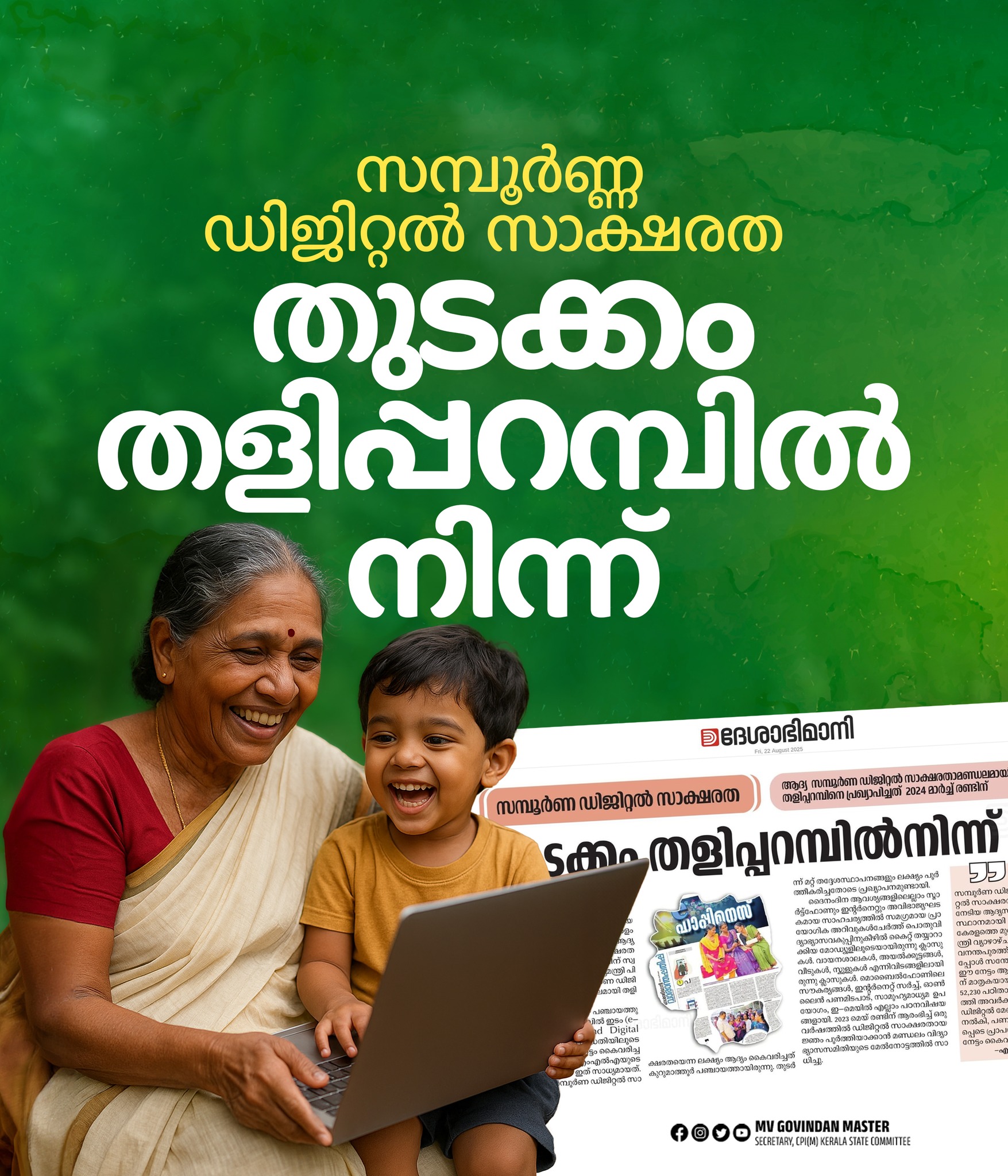 സമ്പൂർണ ഡിജിറ്റൽ സാക്ഷരത നേടിയ ആദ്യ സംസ്ഥാനമായി കേരളം ചരിത്രത്തിൽ ഇടംപിടിക്കുമ്പോൾ അത്യധികം അഭിമാനകരമായ മറ്റൊരു നേട്ടം ആദ്യ സമ്പൂർണ ഡിജിറ്റൽ മീഡിയ സാക്ഷരത മണ്ഡലമെന്ന ഖ്യാതി തളിപ്പറമ്പിന് സ്വന്തമാക്കാനായതാണ്. 2024 ഫെബ്രുവരി ഇരുപത്തിനാലിനാണ് മുഖ്യമന്ത്രി പിണറായി വിജയൻ ആദ്യ സമ്പൂർണ ഡിജിറ്റൽ മീഡിയ സാക്ഷരതാ മണ്ഡലമായി തളിപ്പറമ്പിനെ പ്രഖ്യാപിച്ചത്.