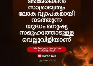 07/04/2026ഏപ്രില് 9-ന് നടക്കുന്ന നിയമസഭാ തെരഞ്ഞെടുപ്പില് എല്.ഡി.എഫ് സ്ഥാനാര്ത്ഥികളെ വമ്പിച്ച ഭൂരിപക്ഷത്തോടെ വിജയിപ്പിക്കുക. 2011-2016 കാലഘട്ടത്തില് കേരളം ഭരിച്ച യു.ഡി.എഫ് സര്ക്കാര് ആഗോളവല്ക്കരണ നയങ്ങള് അതേപോലെ നടപ്പിലാക്കാനാണ് ശ്രമിച്ചത്. അതിന്റെ ഫലമായി നാടിന്റെ സമസ്ത മേഖലകളും തകര്ന്നു.