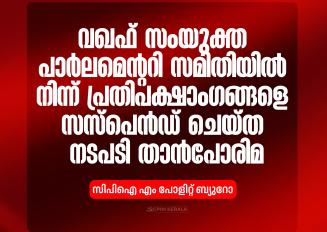 വഖഫ് സംയുക്ത പാർലമെന്ററി സമിതിയിൽ നിന്ന് പ്രതിപക്ഷാംഗങ്ങളെ സസ്പെൻഡ് ചെയ്ത നടപടി താൻപോരിമ