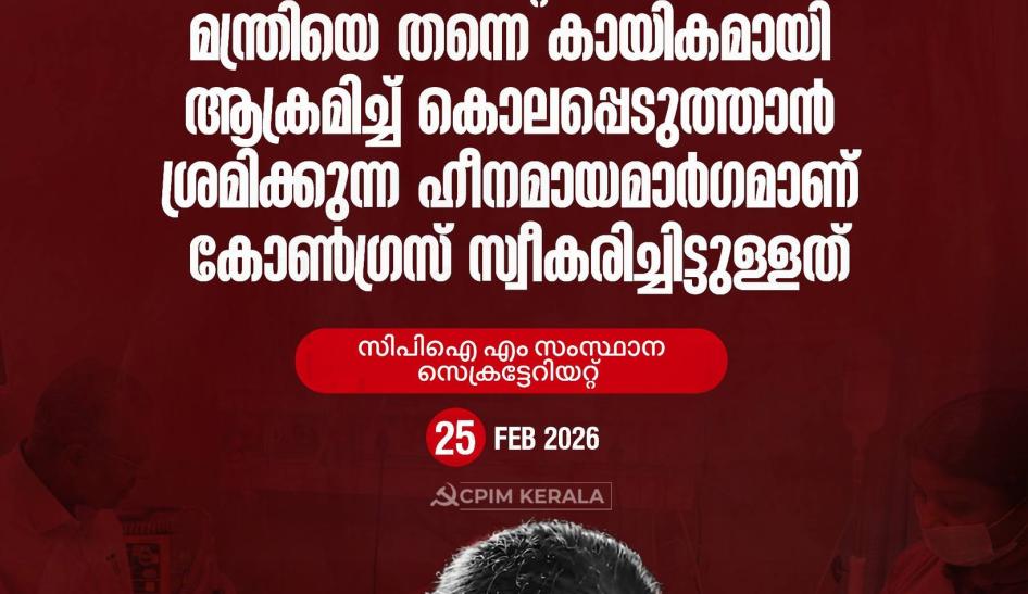 എല്ഡിഎഫിനെ രാഷ്ട്രീയമായി എതിര്ക്കാന് പറ്റാത്തതിനാല് മന്ത്രിയെതന്നെ കായികമായി ആക്രമിച്ച് കൊലപ്പെടുത്താന് ശ്രമിക്കുന്ന ഹീനമായ മാര്ഗമാണ് കോണ്ഗ്രസ് സ്വീകരിച്ചിട്ടുള്ളത്. ഇത് അങ്ങേയറ്റം പ്രതിഷേധാര്ഹവും, അപലപനീയവുമാണ്.