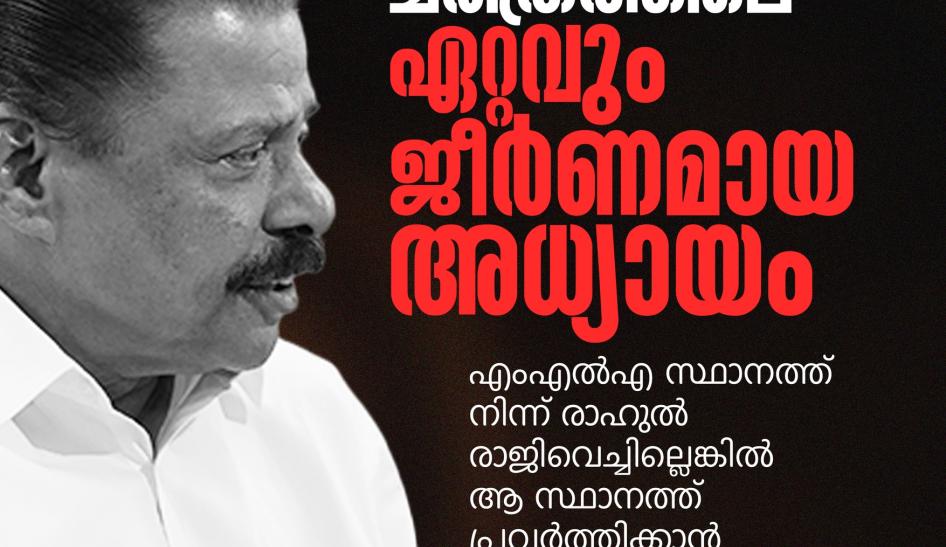 കോൺഗ്രസ് ചരിത്രത്തിലെ ഏറ്റവും ജീർണമായ അധ്യായമാണ് രാഹുൽ മാങ്കൂട്ടവുമായി ബന്ധപ്പെട്ട വിഷയത്തിൽ ഇപ്പോൾ സംഭവിച്ചിരിക്കുന്നത്. കോൺഗ്രസ് രൂപംകൊണ്ടതിന് ശേഷം ഇതുപോലൊരു സംഭവം ഇതാദ്യമാണ്.