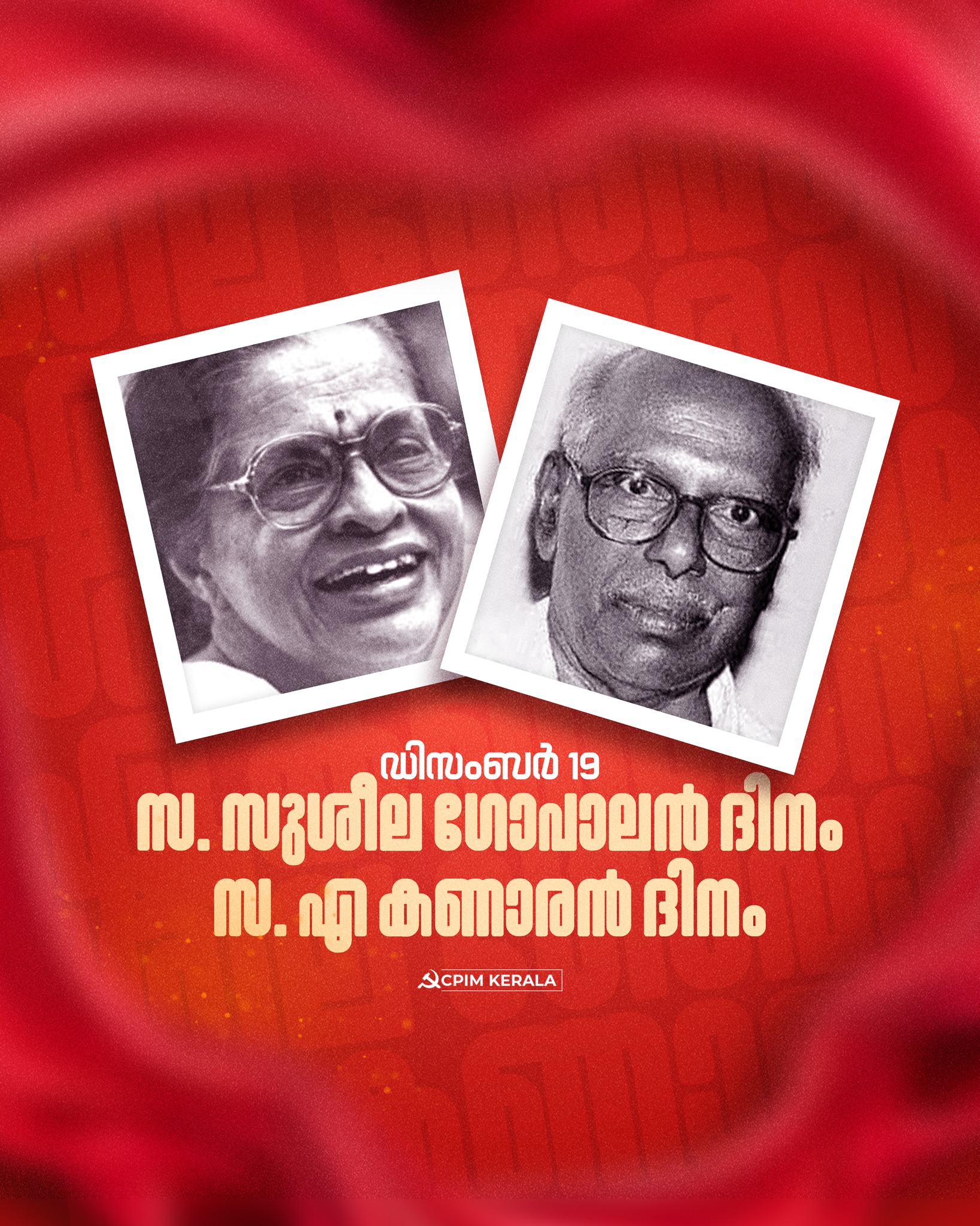 പോരാട്ടപാതകളിൽ എന്നും ആവേശമായിരുന്നു ഇരുനേതാക്കളും. എല്ലാ പ്രതിസന്ധികളെയും നേരിട്ട് പ്രസ്ഥാനത്തെ കൂടുതൽ കരുത്തോടെ മുന്നോട്ടുനയിക്കാൻ സ. സുശീല ഗോപാലന്റെയും സ. എ കണാരന്റെയും സ്മരണ നമുക്ക് എക്കാലവും ഊർജമേകും.